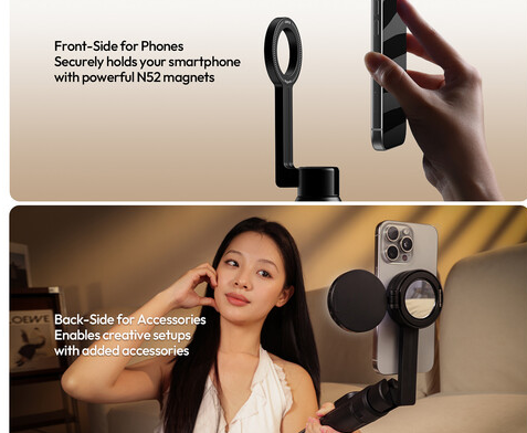 Opremljen sigurnim stezaljkom za telefon i snažnom N52 magnetskom potporom, SK27 osigurava čvrst hvat za pametne telefone širine od 56 mm do 92 mm. Dvostrani dizajn također omogućuje pričvršćivanje dodataka na stražnjoj strani, što omogućuje proširene postavke s osvjetljenjem ili drugom kreativnom opremom.