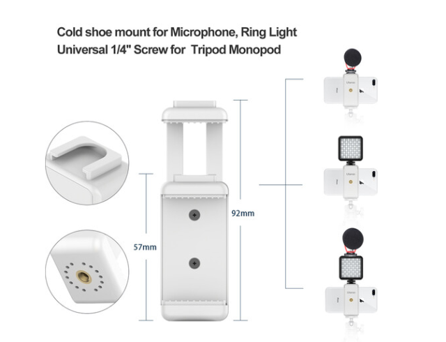Držač na klemu ima mekanu gumenu podstavu koja štiti vaš telefon od ogrebotina, istovremeno osiguravajući čvrst hvat kako bi se spriječilo klizanje tijekom upotrebe. Njegov lagani i prenosivi dizajn čini ga praktičnim dodatkom opremi svakog mobilnog kreatora.