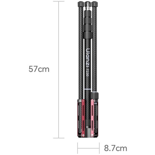 Stalak za svjetla Ulanzi T230 nudi fleksibilnost i stabilnost kako profesionalnim, tako i amaterskim stvaraocima. Njegove neovisne reverzibilne noge i protuklizne silikonske podloge omogućuju mu da ostane stabilan na neravnim površinama, dok se teleskopska uklonjiva središnja stupica podešava od 22,8" do 90,5" (57–230 cm) kako bi odgovarala različitim kutovima osvjetljenja. Izrađen od aluminija, karbonskih vlakana, plastike i čelika, T230 je lagan, s težinom od samo 0,95 kg, a ipak dovoljno čvrst da podnese svjetla, kamere ili dodatke težine do 11 lb (5 kg). Stalak ima montažni vijak 1/4"-20 i standardni čep za svjetlo radi široke kompatibilnosti. Sklopiv do 22,4" (57 cm) i s vrećicom za pohranu, lako se transportira i idealan je za snimanje u pokretu ili studijske postavke.