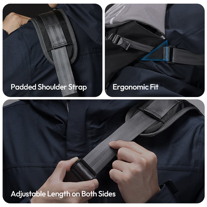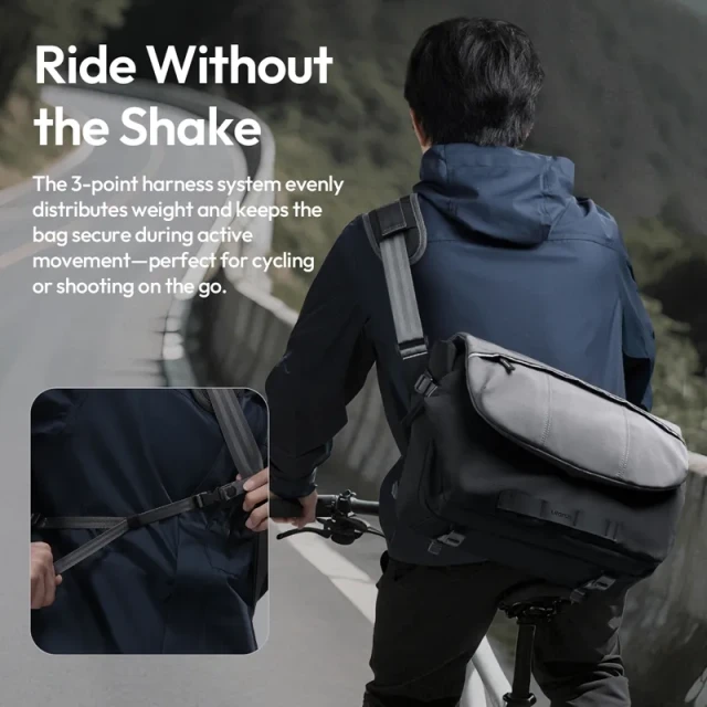 Sustav pojaseva s 3 točke ravnomjerno raspoređuje težinu i drži torbu sigurnom tijekom aktivnog kretanja - savršeno za vožnju biciklom ili pucanje u pokretu.