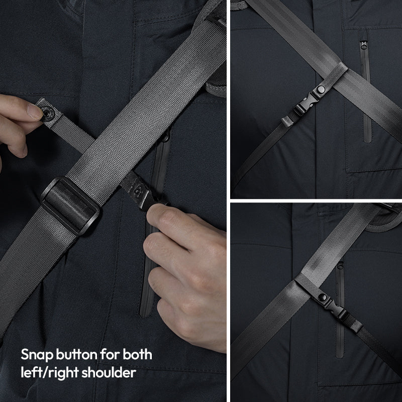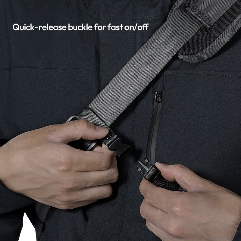 Promijenite strane nošenja u sekundama pomoću našeg odvojivog remena bez alata. Kopča za brzo otpuštanje omogućuje trenutno uklanjanje, dok podesivi gumbi osiguravaju savršeno pozicioniranje lijevog/desnog ramena.