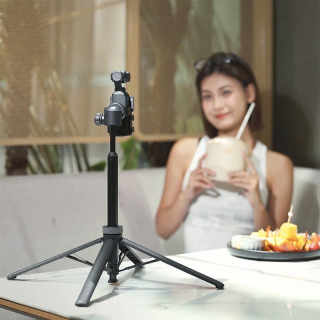 S dvostrukom funkcionalnošću, TT24 služi kao selfie štap koji se produžuje do 1,46 m za grupne ili širokokutne snimke, ili kao podni stativ s teleskopskim nogama u 7 sekcija koje dosežu 1,48 m za fotografiranje cijelog tijela. Priložene Cka pločice za brzo otpuštanje drže telefone, akcijske kamere i druge male uređaje, dok lagani dizajn od 360 g osigurava prenosivost bez kompromisa. Idealan za vloganje, prijenos uživo, putovanja ili studijsku upotrebu, TT24 kombinira praktičnost, stabilnost i prilagodljivost u jednom kompaktnom paketu.