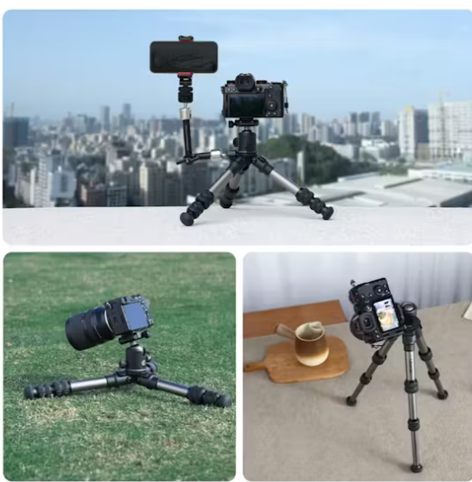 Noge s zaključavanjem zavrtnjem nude beskonačno podesive visine od 140 mm do 440 mm, a mehanizam za brzo podešavanje kuta omogućuje jednostavno postavljanje za snimanje iz niskih kutova. Izrađen od debelog aluminija, može podnijeti do 20 kg, a odvojive gumene noge protiv klizanja osiguravaju stabilnost na bilo kojoj površini. Ugrađena bočna montaža od 1/4 inča omogućuje pričvršćivanje dodataka kao što su držač za pametni telefon, LED svjetlo ili magična ruka, čime se povećava svestranost za različite scenarije snimanja.