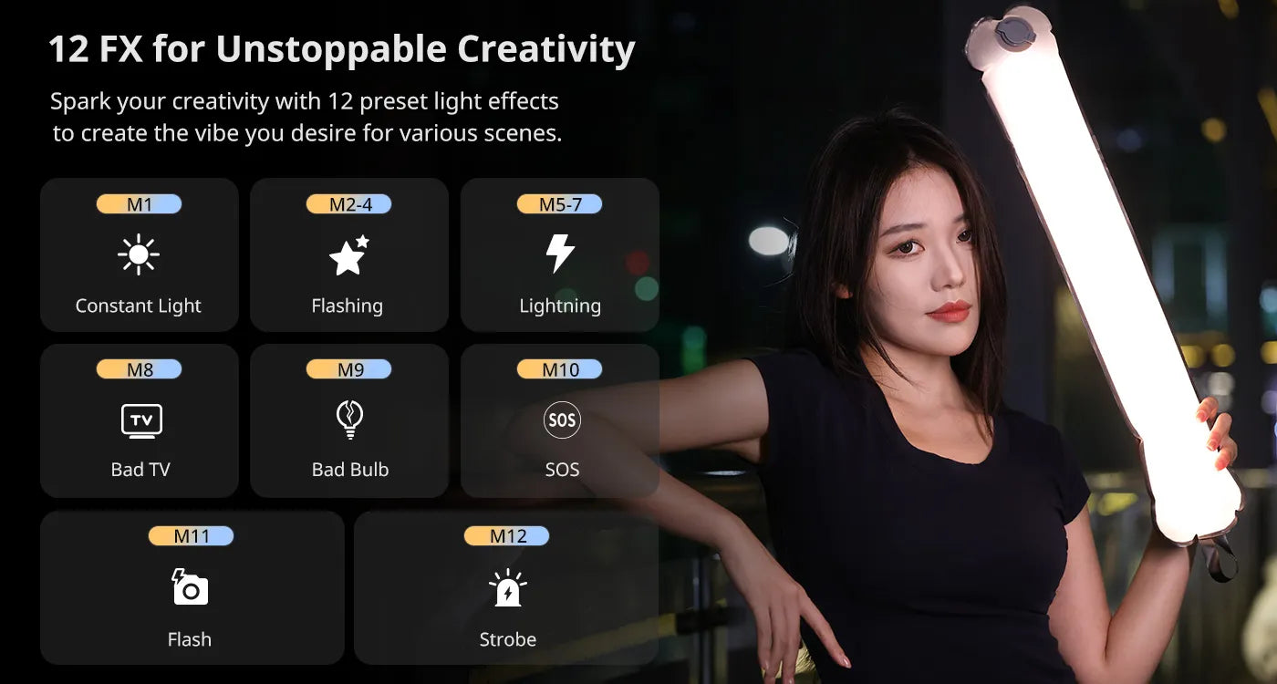 Prijenosna zračna svjetiljka Ulanzi UA12/UA20 nudi jednostavno napuhavanje i ispuhivanje, pogodna za različite scenarije. Podesite temperaturu boje od 2700K do 6500K kako bi odgovarala vašim potrebama snimanja. Poboljšajte svoju kreativnost s 12 unaprijed postavljenih svjetlosnih efekata. Magnetski nosač i postolje od 1/4" osiguravaju svestrane postavke, a uzica omogućuje jednostavno vješanje. Napaja se baterijom od 18 Wh, podržava brzo punjenje za 2 sata, pružajući 75 minuta (UA12) ili 55 minuta (UA20) rada pri punoj svjetlini. Savršena za korištenje u pokretu, kompaktno se sklapa kada se ispuše.