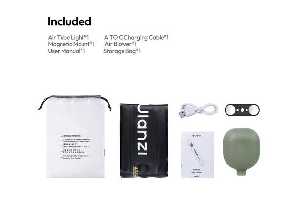 UA20C dolazi s kabelom za punjenje, puhačem zraka i torbicom za pohranu, što ga čini cjelovitim rješenjem za osvjetljenje u pokretu za kreatore.