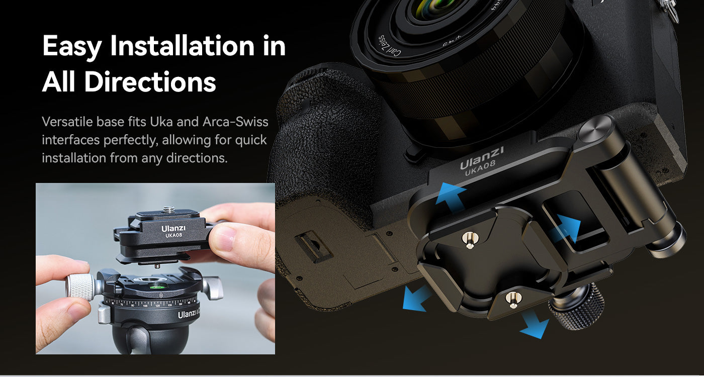 Univerzalna ploča Kompatibilna s većinom ploča za brzo otpuštanje. Lako se zaključava i otključava okretnim gumbom. Nije potreban navoj od 1/4".
