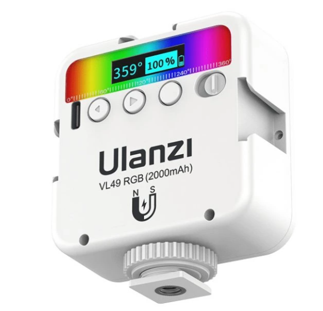 Ulanzi VL49 RGB LED svjetlo za kameru je kompaktno i svestrano svjetlo koje nudi potpunu kontrolu RGB boja, podesivu temperaturu bijele od 2500K do 9000K i 13 ugrađenih svjetlosnih efekata. Dizajnirano za vlogere, fotografe, streamere i radnike na daljinu, pruža visokokvalitetno osvjetljenje u prijenosnom, magnetski montiranom dizajnu s dugim vijekom trajanja baterije i fleksibilnim opcijama montaže.