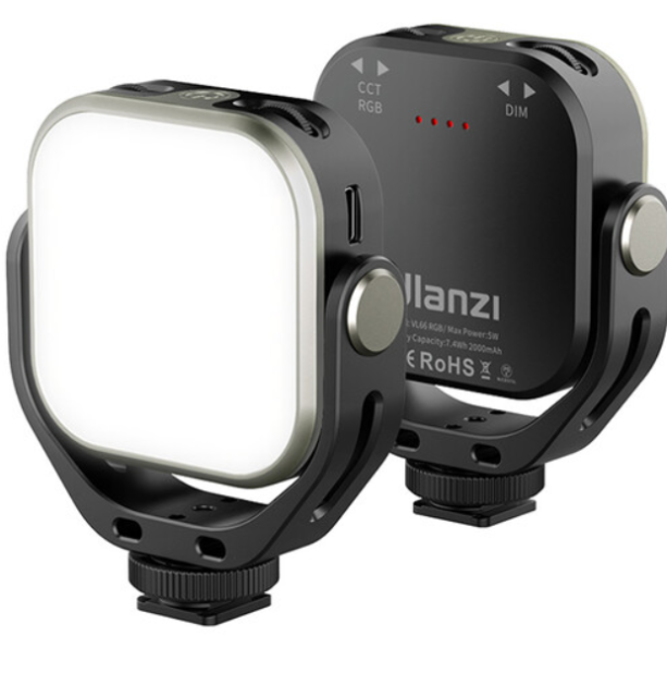 Ulanzi VL66 RGB LED svjetlo je kompaktno, prijenosno i snažna lampa za kreativce, koja pruža živopisno RGB i dvobojno osvjetljenje u panelu dimenzija 3,6 x 3,1 x 1" težine samo 3,6 oz. S podesivim temperaturama boja od 2500K do 6500K, potpunom RGB kontrolom i do 112 luksa na 3,3' (ili 450 luksa na 1,6'), postiže točnost CRI 95 za realistične boje u prijenosima uživo, vlogovanjima ili fotografijama. Napaja se ugrađenom punjivom baterijom od 2000 mAh koja nudi 120 minuta pri punoj svjetlini, ima intuitivne ugrađene kotačiće za CCT i svjetlinu, rotaciju od 360° putem viljuške u obliku slova U i svestranu montažu s adapterom za hladnu papučicu ili navojem od 1/4"-20 - plus USB-C punjenje za praktičnost u pokretu.