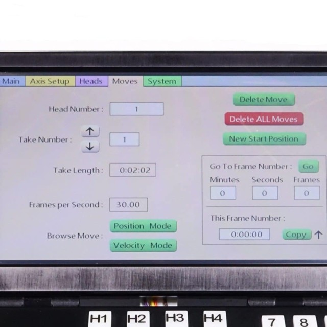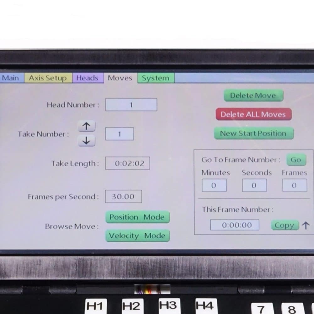 Kontrolne osi: panoramsko pomicanje, nagib, zumiranje, fokus, blenda, praćenje/luka, boom