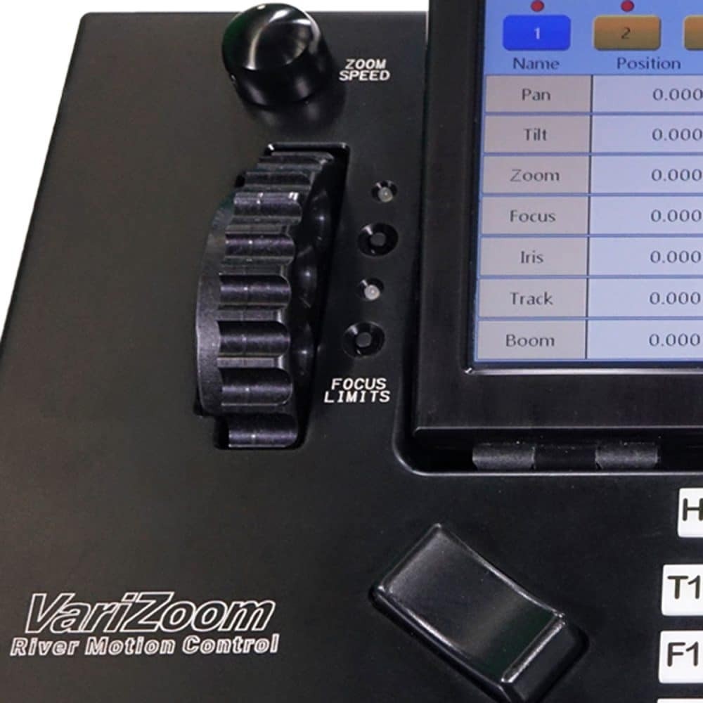 VariZoom River višestruka upravljačka konzola dizajnirana je za profesionalnu produkciju s više kamera, nudeći precizno upravljanje s do četiri 7-osna daljinska sustava kamera. Kompatibilna s daljinskim glavama CinemaPro, CP Micro i CP JR, River konzola omogućuje upravljanje osima panoramiranja, nagiba, zumiranja, fokusiranja, blende, praćenja/pomicanja i nosača, neovisno ili istovremeno na više kamera.
