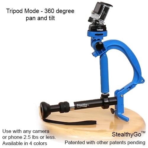 Dizajniran za GoPro® kamere, mobilne uređaje i male kamkordere, StealthyGo™ se prilagođava vašim potrebama snimanja u sekundama. Prebacite se iz ručnog načina rada u monopod , stativ , stolni ili 3-točkovni način rada za stabilne snimke u skučenim prostorima ili dulje snimanje iz ruke. Ugrađena kopča za remen omogućuje brz pristup u "načinu rada na kuku" tako da nikada ne propustite snimak.