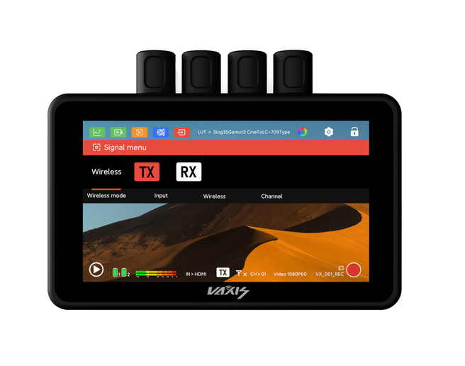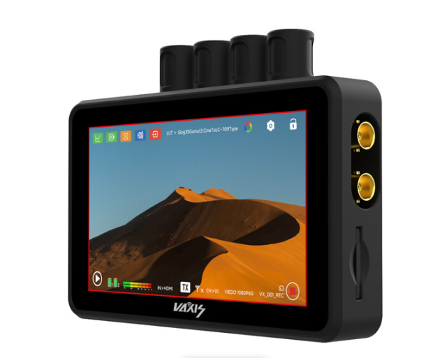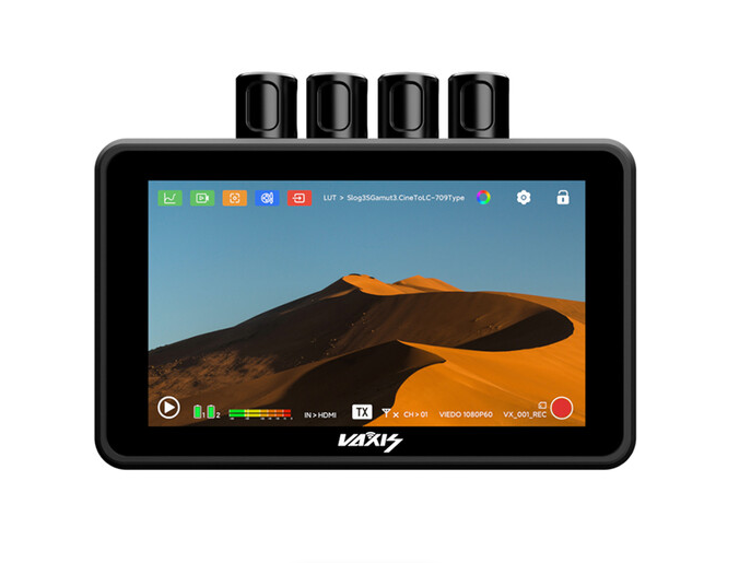 Vaxis Atom A5 5,5" bežični RX/TX SDI/HDMI monitor kombinira visoku svjetlinu nadzora na kameri s robusnim bežičnim prijenosom i prijemom videa u laganoj jedinici od 340 g, s LCD zaslonom osjetljivim na dodir rezolucije 1920x1080 s svjetlinom od 2000 cd/m² i kontrastom od 1200:1 za jasno gledanje pri dnevnom svjetlu. Podržava do 1080p60 putem SDI i HDMI ulaza s loop-through izlazima, omogućuje MP4 proxy snimanje izravno na microSD karticu i besprijekorno se integrira u Vaxis Atom ekosustav (kompatibilan s Atom serijom 500/600) za prijenos u vidnom polju do 300 metara. Dodatne profesionalne značajke uključuju sinkronizaciju vremenskog koda s okidačem za snimanje kamere, pohranu za do 50 3D LUT-ova, sveobuhvatne alate za snimanje (valni oblik, vektorskop, histogram, peaking), dvostruke zamjenjive antene i fiksnu dvostruku L-serijsku baterijsku ploču za dulje vrijeme rada.