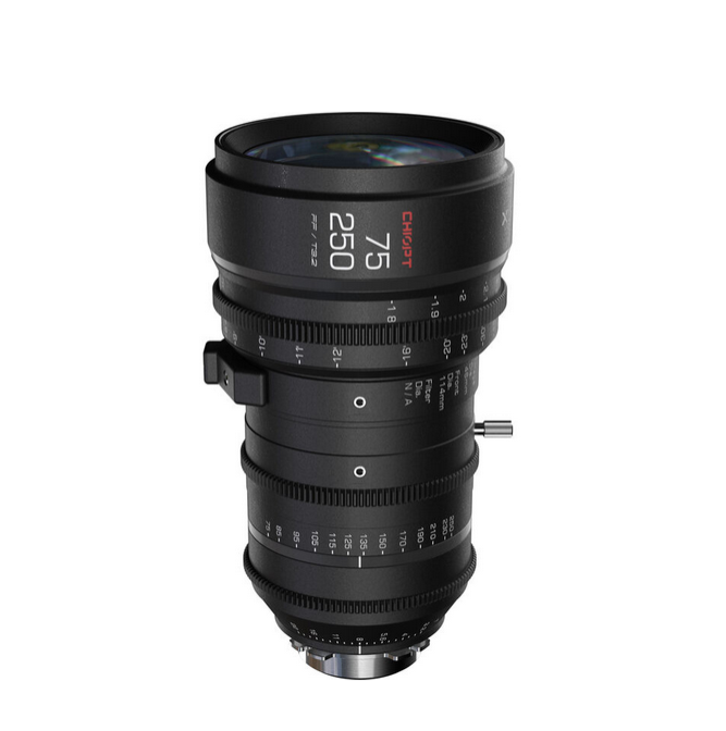 CHIOPT XTREME 75-250mm T3.2 kompaktni zoom objektiv (PL nosač) je telefoto zum objektiv punog formata dizajniran za profesionalno snimanje, koji pruža oštre slike bez izobličenja s konstantnim otvorom blende T3.2, minimalnim "disanjem" i prekrasnim zaobljenim bokeh efektom s 11 lamela. Boja i težina usklađeni su s 28-85mm XTREME zum objektivom, a imaju izmjenjivi PL nosač (EF/E opcija), metalnu konstrukciju otpornu na vremenske uvjete, dvostruke oznake fokusa i kut fokusa od 288° za precizan rad.