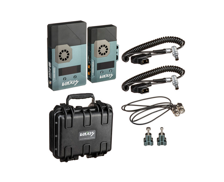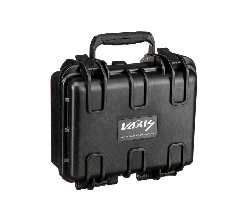 Vaxis Storm 1000S bežični komplet (zlatni nosač) prenosi vizualno bez gubitaka 1080p60 video do 1148' linije vidljivosti s latencijom <1 ms, s SDI/HDMI I/O, multicastom, vremenskim kodom/metapodacima i unakrsnom kompatibilnošću sa Storm 058/800/2000/5000 sustavima.