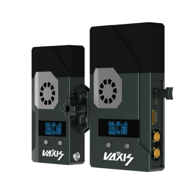 VAXIS STORM 1000S KIT robusno je bežično video rješenje dizajnirano za filmaše i televizijske kuće koji zahtijevaju visokokvalitetne performanse u svojim produkcijama. Ovaj komplet uključuje jedan odašiljač (TX) i jedan prijamnik (RX) koji mogu odašiljati 1080p video na daljinu do 1148 stopa, s latencijom manjom od 1 milisekunde, osiguravajući besprijekoran nadzor i snimanje u stvarnom vremenu .
