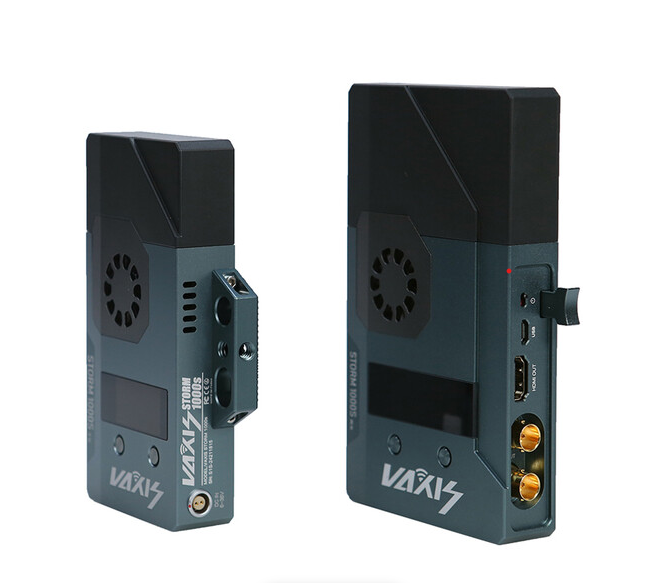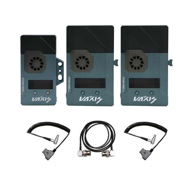 Vaxis Storm 1000S bežični odašiljač + dva prijemnika pruža vizualno bez gubitaka 1080p video s latencijom manjom od 1 ms na udaljenosti od 330 metara, s 3G-SDI i HDMI I/O s loop izlazom na odašiljaču, dva SDI/HDMI izlaza po prijemniku, podrškom za multicast, unakrsnom konverzijom, protokom vremenskog koda/metapodataka i radom bez smetnji na 20 kanala u frekvencijskim pojasevima od 5,1 do 5,9 GHz.