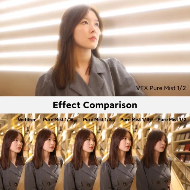 VFX 4x5.65'' Pure Mist Filter ima vrlo lijep halo efekt. Osobito u slučaju stvarnih izvora svjetlosti i izvora vidljive svjetlosti. disperzija svjetla je vrlo jaka.