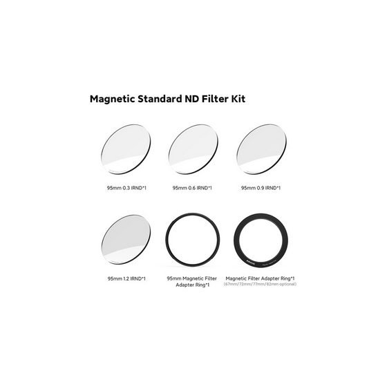 Vaxis VFX 95mm magnetski standardni ND komplet filtera uključuje 1-, 2-, 3- i 4-stop IRND filtere s magnetskim adapterom, što omogućuje brzu zamjenu i slaganje za preciznu kontrolu ekspozicije i vjernu reprodukciju boja, kompatibilan s 95mm objektivima ili Tilta Mirage Matte Boxom koji koristi vrhunsko K95 optičko staklo s IR/UV graničnikom punog spektra i dvostranim 12-slojnim premazom.