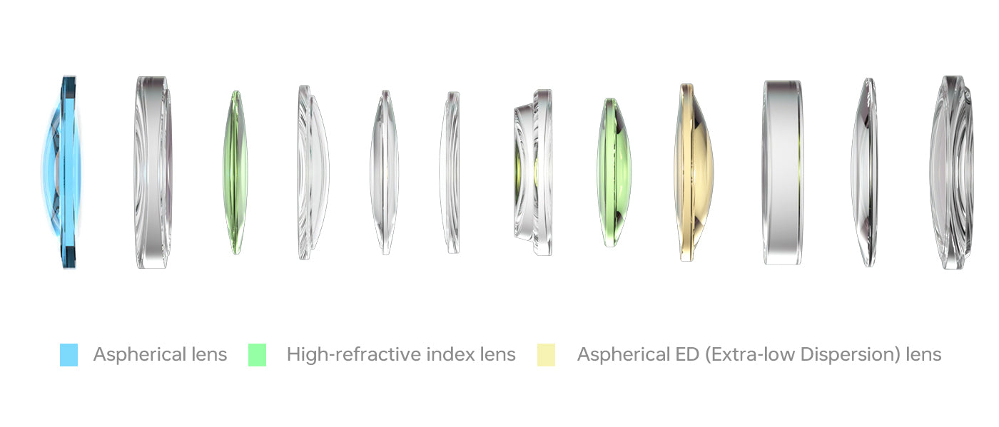 S 1 elementom ekstra niske disperzije, 2 elementa visokog indeksa loma i 2 asferična elementa s višeslojnim HD nano premazom,