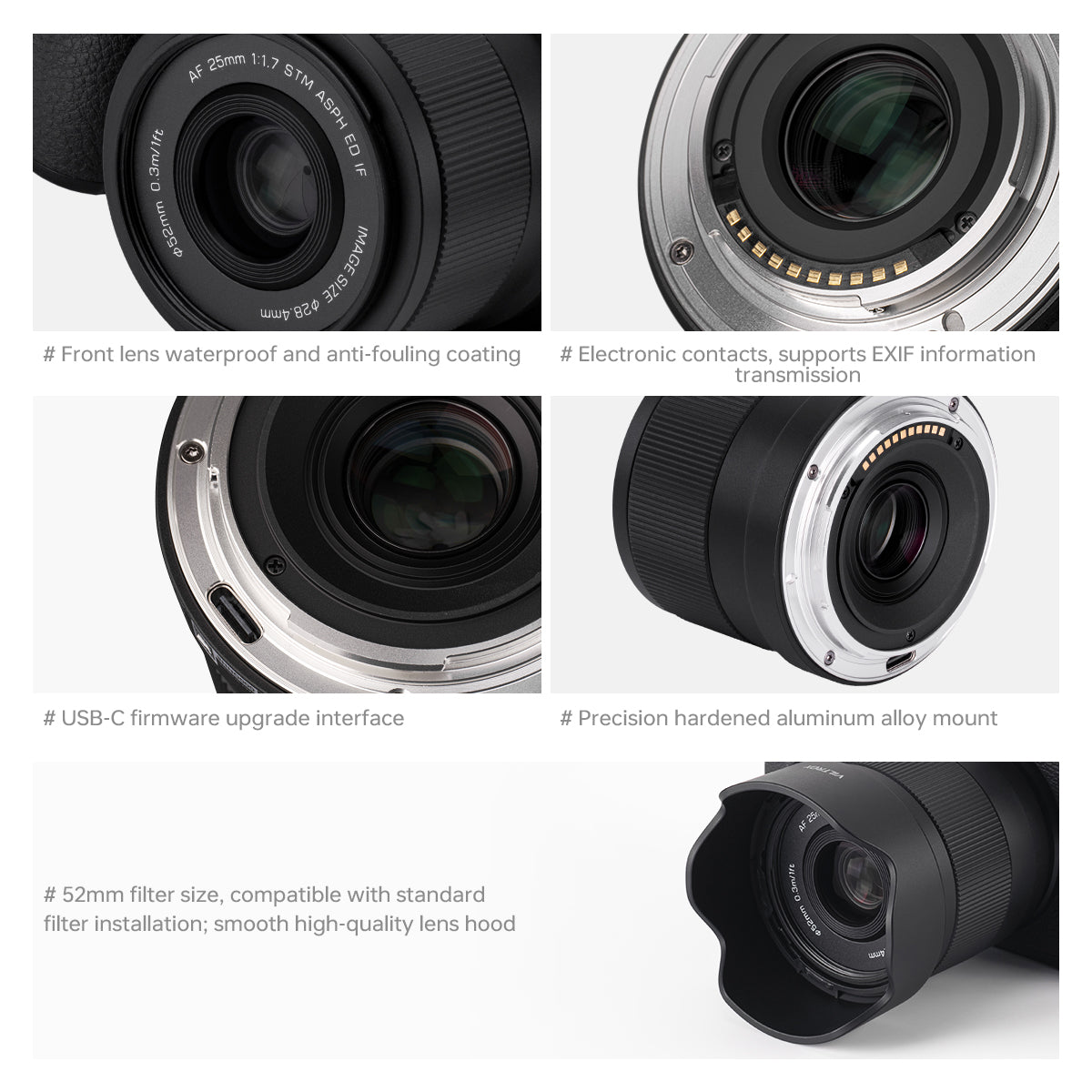 AF 25mm F1.7 je Viltroxov lagani objektiv s automatskim fokusiranjem sljedeće generacije, koji nudi iznimnu vrijednost za početnike. Njegov kompaktan dizajn, precizno automatsko fokusiranje i otvor blende F1.7 pružaju izvrsnu kvalitetu slike, čineći kreativno izražavanje lakim za sve korisnike. Prijenosan i džepni, inspiracija vam je uvijek nadohvat ruke.