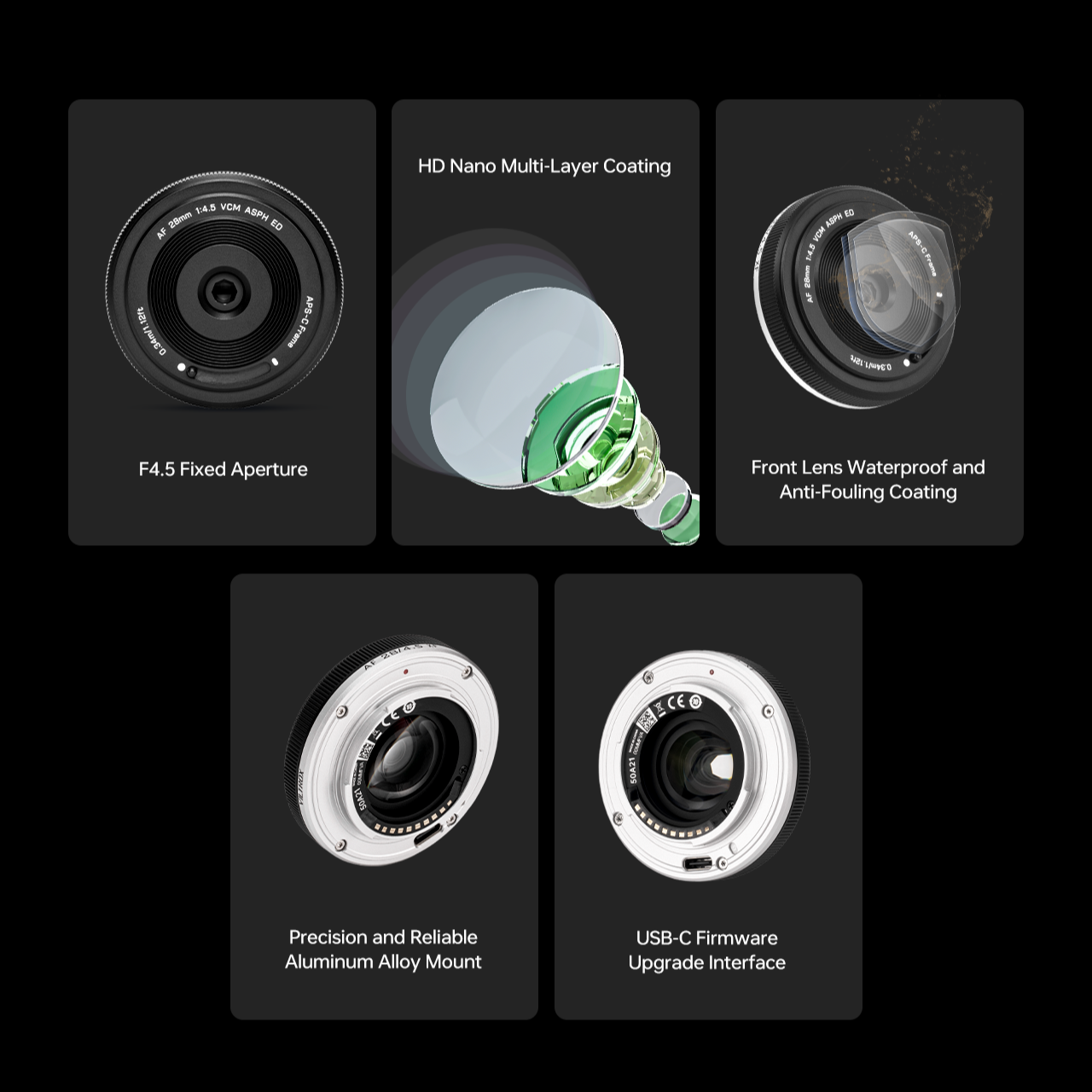 Objektiv AF 28 mm F4.5 XF održava Viltroxov prepoznatljiv učinkovit i precizan sustav autofokusa u kompaktnom dizajnu. Osigurava točnost bez napora, omogućujući korisnicima Fujifilm X-mount da se usredotoče na kreativnost bez gnjavaže složenih operacija.