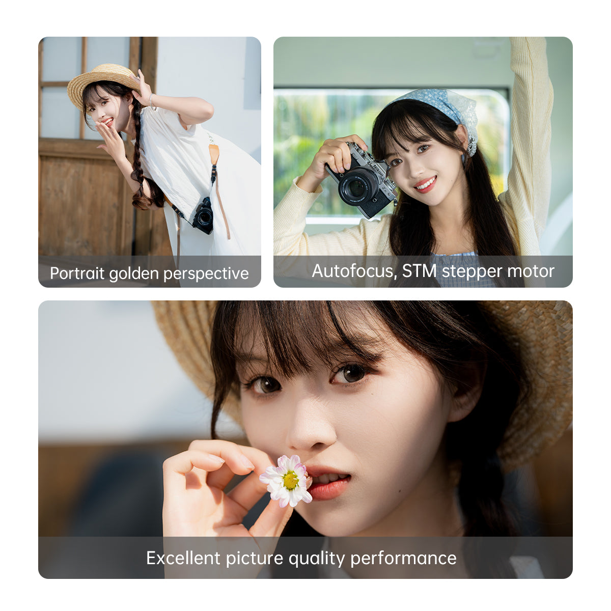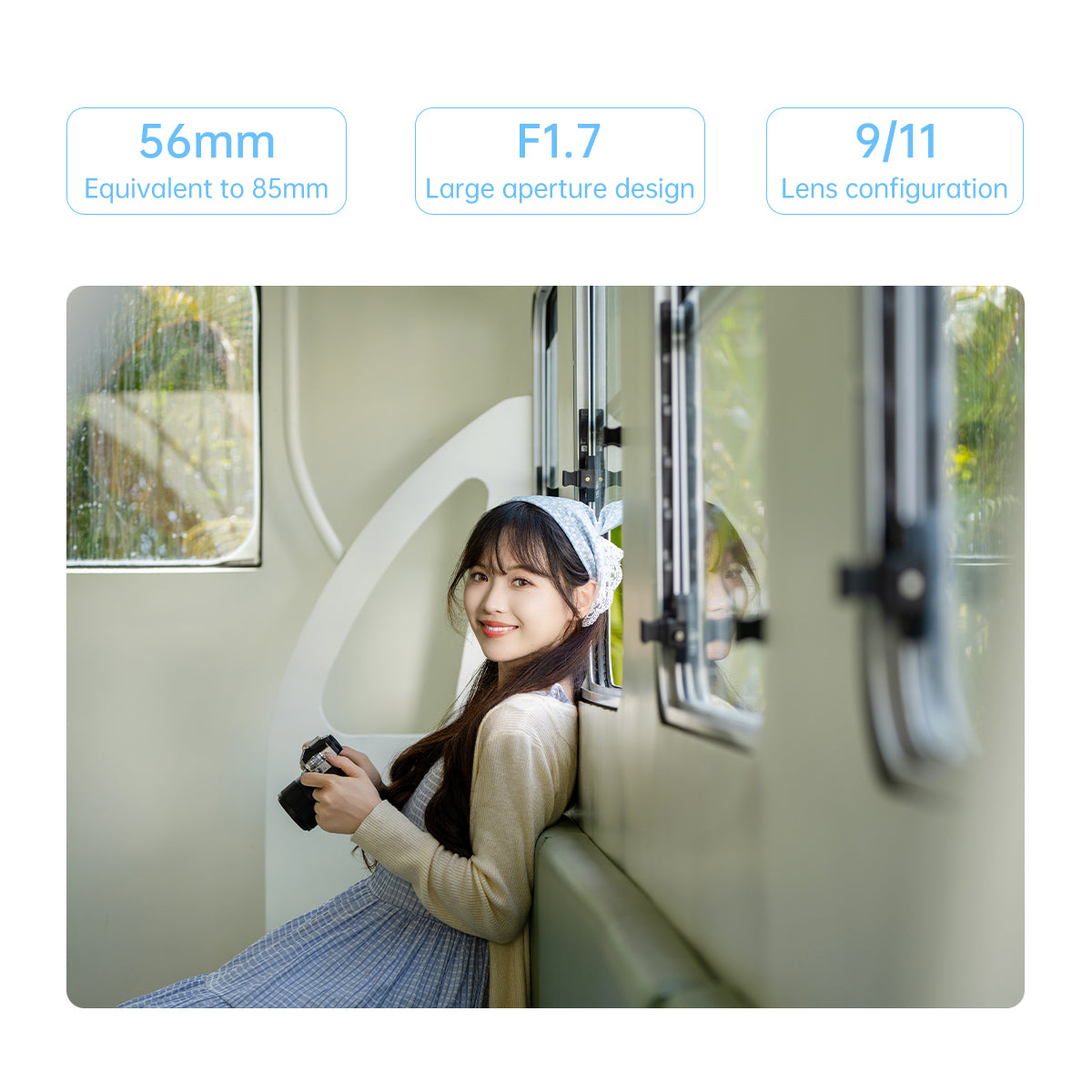 56 mm F1.7 je ekvivalent žarišne duljine punog kadra od oko 85 mm, sa zlatnom portretnom perspektivom, koja donosi pravi trodimenzionalni osjećaj likova i pozadinske perspektive.