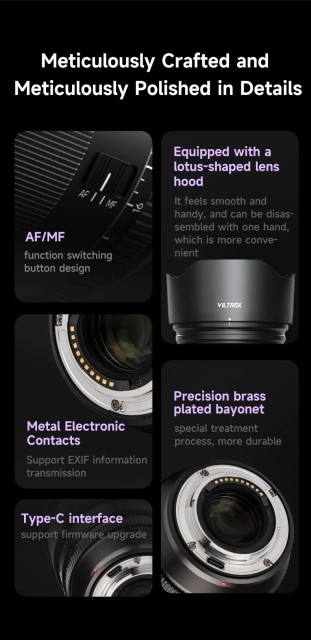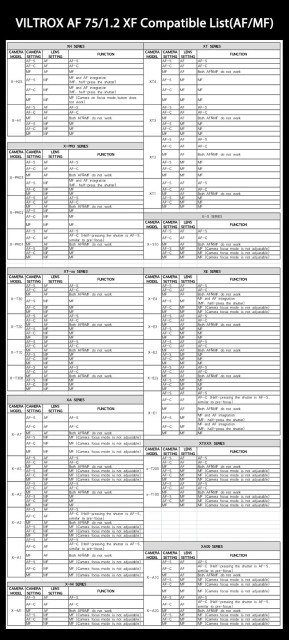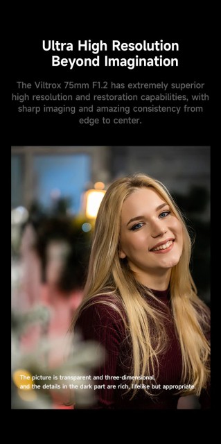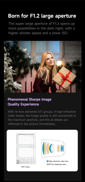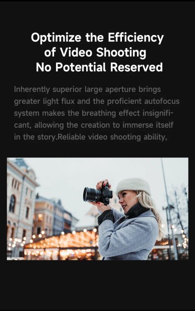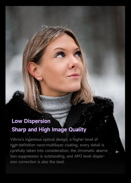 Objektiv visoke svjetlosti s automatskim autofokusom za uređaje s bajonetom Fujifilm X Mount. Viltroxov prvi "Pro" X Mount objektiv koristi visokokvalitetno Hoya staklo uvezeno iz Japana i nudi veliki otvor blende od f/1.2 i izvrsno crtanje s minimalnom kromatskom aberacijom,