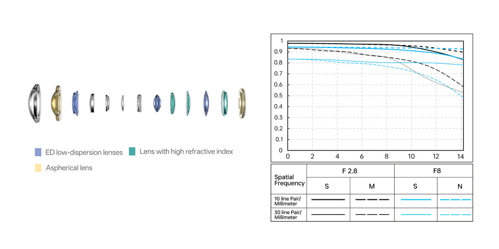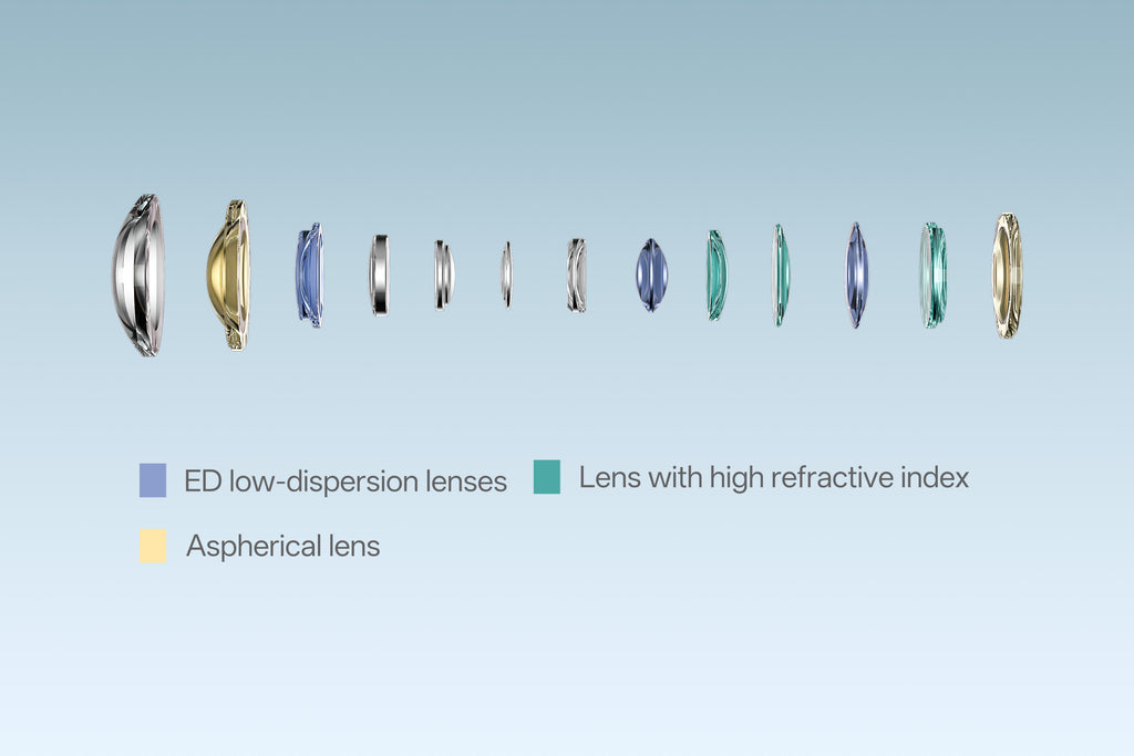 Pažljivo izrađena optička konstrukcija od 13 elemenata u 11 skupina uključuje 2 asferična, 3 ED i 3 HR elementa za učinkovitu kontrolu kromatskih aberacija i distorzije, a istovremeno pruža iznimnu jasnoću od ruba do ruba u ultraširokokutnim slikama.