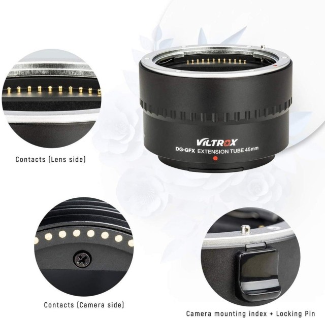 Viltrox DG-GFX 45 mm produžna cijev posebno je razvijena za Fuji GFX nosače fotoaparata srednjeg formata FUJIFILM GFX50S/GFX50R. Može se koristiti samostalno ili u kombinaciji s drugom 18 mm produžnom cijevi, koja može postići 3 različite vrste povećanja i savršeno funkcionira s automatskim fotoaparatom fokus. Čista bakrena igla, savršen spoj. Metalno sučelje, AF, bolji prijenos