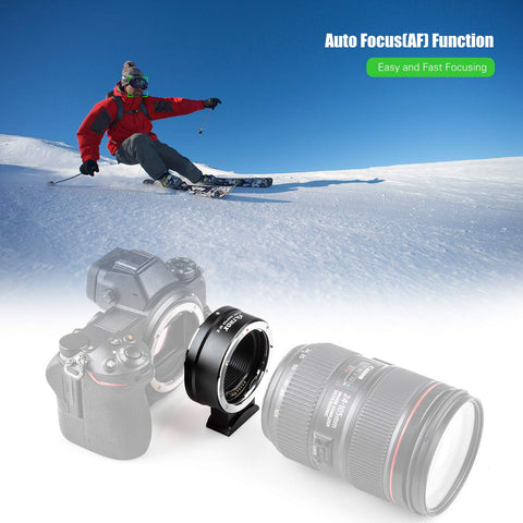 Viltrox EF-Z AF adapterski prsten objektiva kompatibilan s Canon EF/EF-S na Nikon objektivima. Omogućuje korištenje velikog broja Canon EF objektiva na Nikon Z proizvodima (kao što su Z6, Z7). Pozlaćeni električni kontakti osiguravaju autofokus. Firmware fotoaparata može se ažurirati zahvaljujući USB priključku.