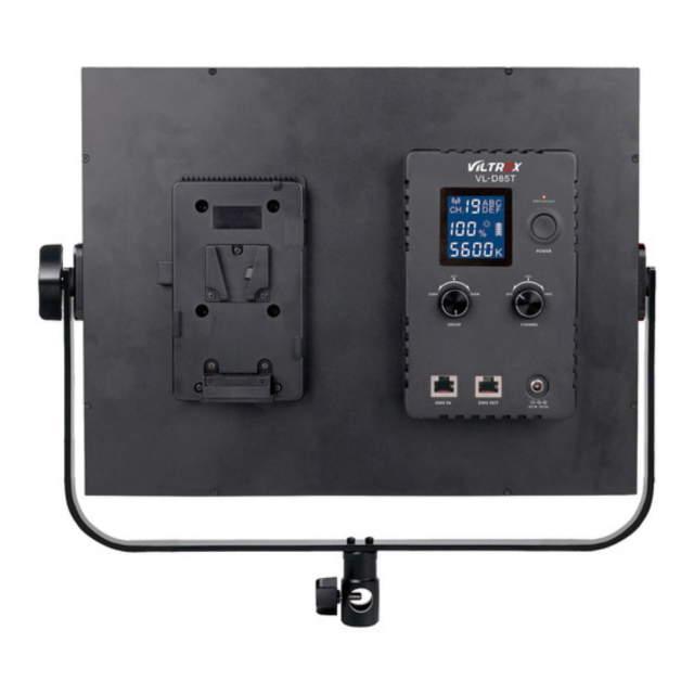 Temperatura boje i svjetlina mogu se kontrolirati lokalno na stražnjoj strani VL-D85T pomoću intuitivnih kontrola i LCD zaslona ili pomoću priloženog bežičnog daljinskog upravljača od 2,4 GHz. Bežični daljinski upravljač ima domet do 65 stopa i može kontrolirati više svjetala u 19 grupa i 6 kanala. Osim toga, RJ45 DMX ulazno/izlazni priključci omogućuju upravljanje panelima putem DMX mrežne veze.