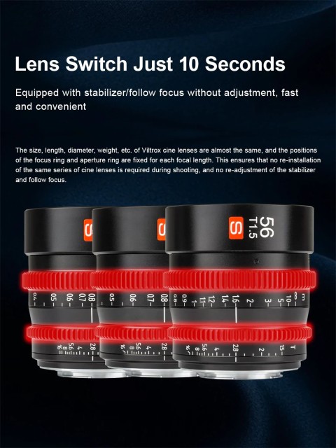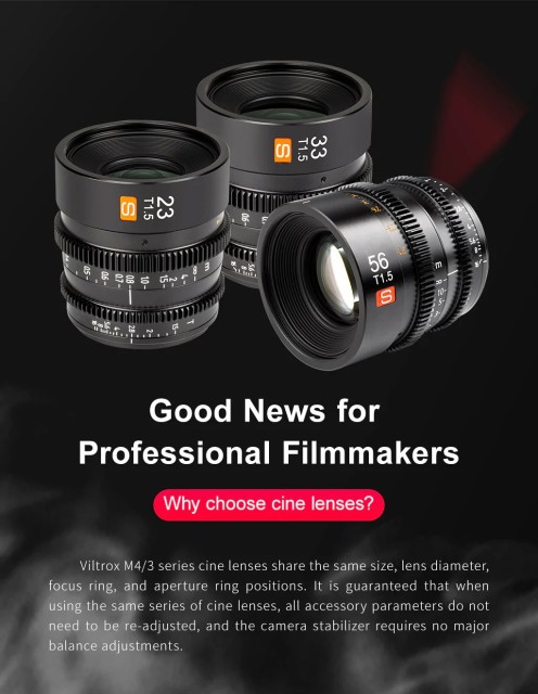 Viltrox cine MFT objektivi nude dosljedne dimenzije/težinu/centre gravitacije/kontrolu za jednostavnu izmjenjivost unutar kamera. Također se može pohvaliti vrlo dobrim T/1.5 otvorom blende, nazubljenim otvorom blende/prstenovima za fokusiranje, izvrsnom oštrinom, minimalnim disanjem, niskom razinom izobličenja i kromatske aberacije, nano premazom leće za smanjenje…