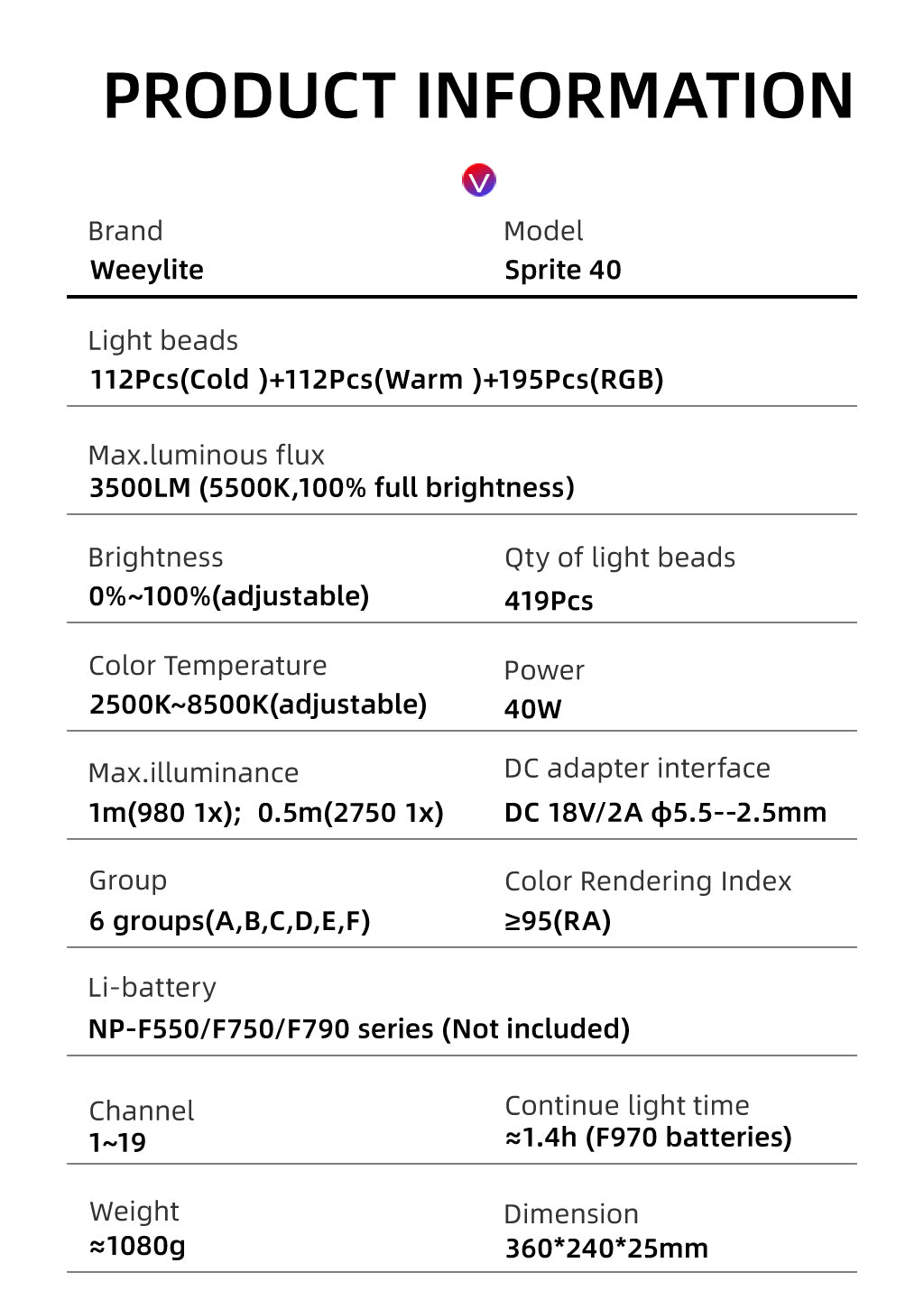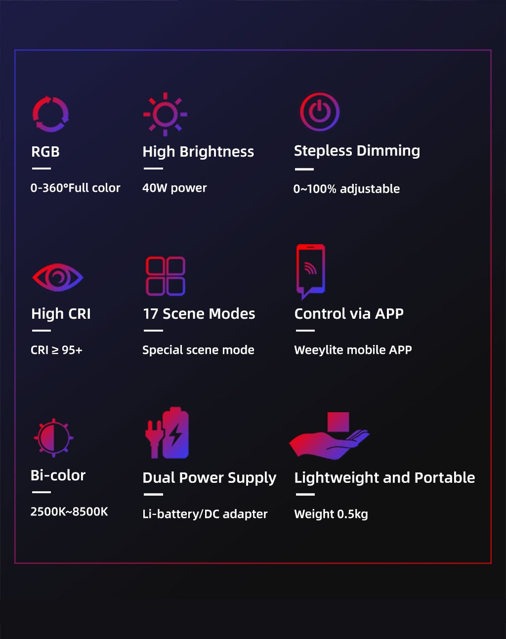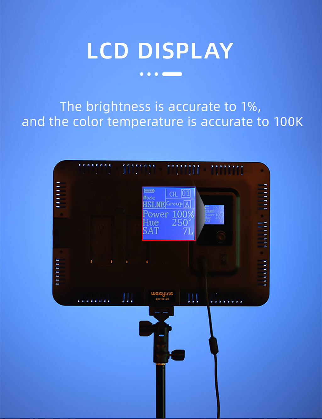 Osvijetlite svoje objekte ovim Weeylite Sprite 40 dvobojnim LED svjetlom s LCD zaslonom tvrtke Viltrox. Ovo meko dvobojno LED svjetlo ima visoki CRI od 95 za precizno iskazivanje boja. Sprite 40 je RGB svjetlo za profesionalnu fotografiju koje je odabralo žarulje s visokim indeksom (bijela + topla) i visokokvalitetne žarulje s RGB lampama u boji. Boja temperatura i svjetlina se mogu lako podesiti. Uz značajke niske potrošnje energije, stabilne temperature boje i lakog nošenja kako bi zadovoljili vaše fotografske zahtjeve.
