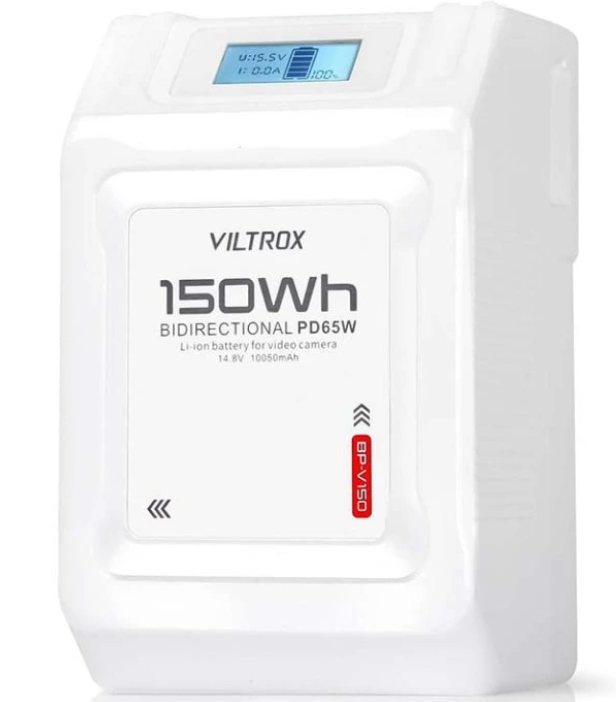 Viltrox BP-V150 V-Mount baterija je litij-ionska baterija visokog kapaciteta od 150 Wh (10050 mAh) dizajnirana za profesionalno snimanje filmova i fotografiju, s više izlaznih priključaka, brzim PD punjenjem, LCD zaslonom statusa i robusnom sigurnosnom zaštitom.