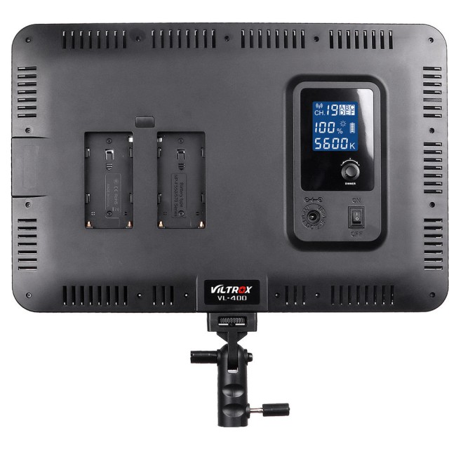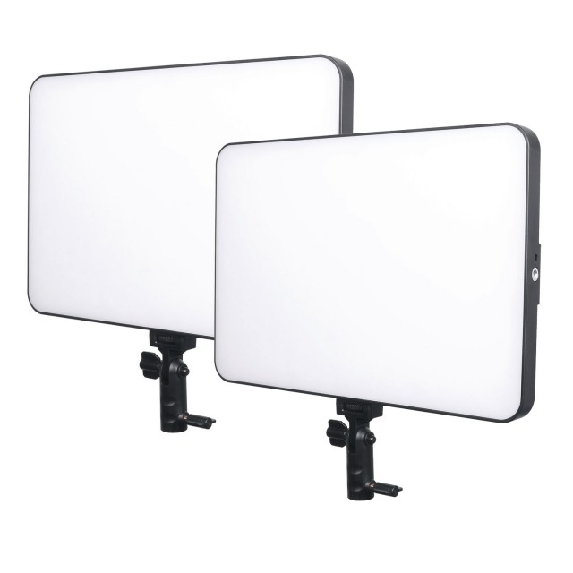 Set od dvije svjetiljke Viltrox VL-400T. Lako prenosivo dvobojno LED svjetlo od 40 W s podesivom temperaturom boje (u rasponu od 3300-5600K) i intenzitetom (20-100%; maks. 2900 lm, 2800 lx/0,5 m). Nudi mogućnost bežičnog daljinskog upravljanja (2,4 GHz, kontroler uključen u isporuku) i mogućnost napajanja pomoću baterija (NP-F550 / F570 / F960 / F970, baterija nije uključena u paket) ili vanjskog izvora napajanja (uključen u paketu). Podešavanje parametara je olakšano čitljivim LCD zaslonom. Dimenzije 360x240x25 mm, težina 1080 g.
