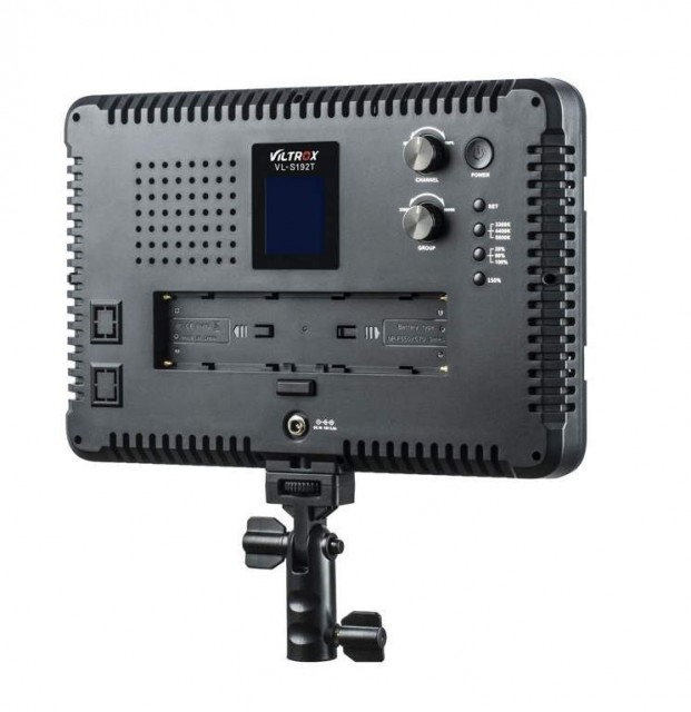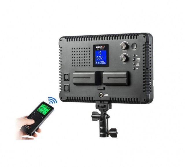 Viltrox VL-S192T svjetlo. Intenzivno dvobojno LED svjetlo od 45W s podesivom temperaturom boje (u rasponu od 3300-5600K) i intenzitetom (20-100%; maks. 4700 lm, 3500 lx/1 m). Nudi mogućnost bežičnog daljinskog upravljanja (2,4 GHz, kontroler uključen u isporuku) i mogućnost napajanja pomoću baterija (NP-F550 / F570 / F960 / F970, baterija nije uključena u paket) ili vanjskog izvora napajanja (uključen u paketu). Podešavanje parametara je olakšano čitljivim LCD zaslonom. Dimenzije 286x190x32 mm, težina 770 g.