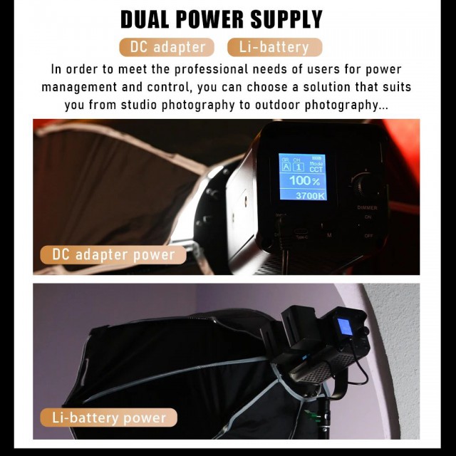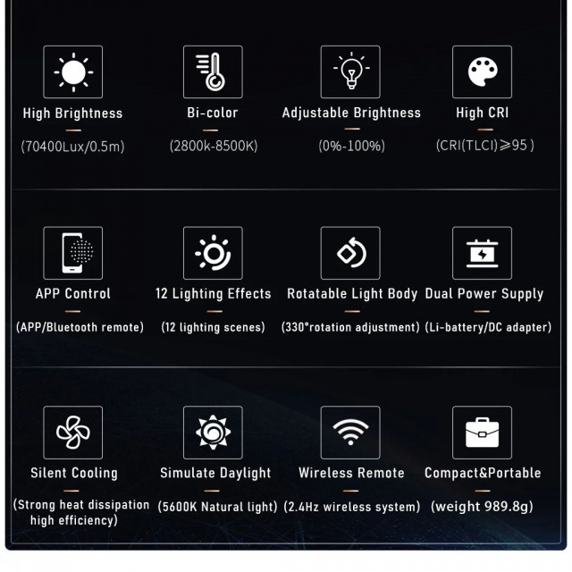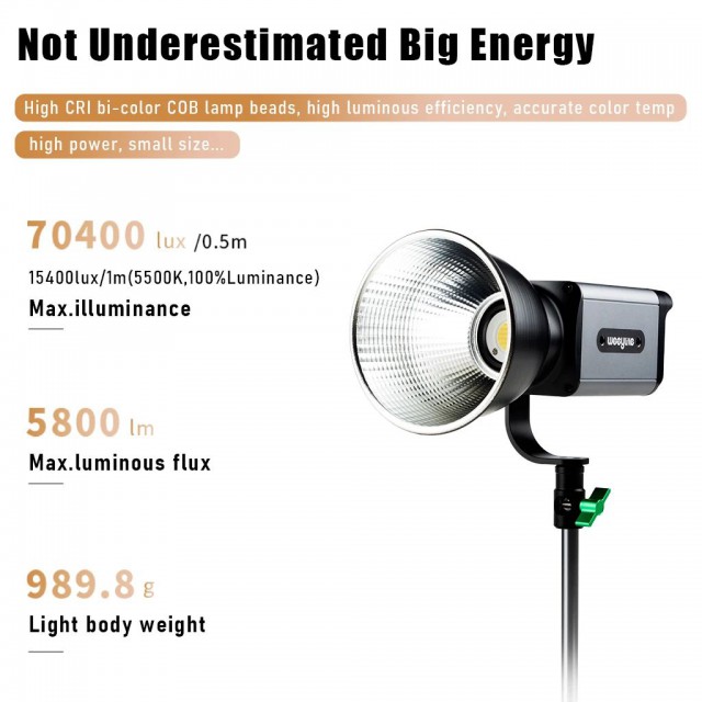 Studio 60W dvobojni LED reflektor Weeylite Ninja 200 koristi modernu COB LED tehnologiju za visoku svjetlosnu snagu i dobar prikaz boja (≥95 RA). Idealan za studijsku fotografiju, video, itd. Nudi potpuno podesivu temperaturu boje u rasponu od 2800K-8500K i intenzitet u rasponu od 0-100% (maks. 5800 lm, 70400 lx/0,5 m). Daljinsko upravljanje ovim modelom moguće…