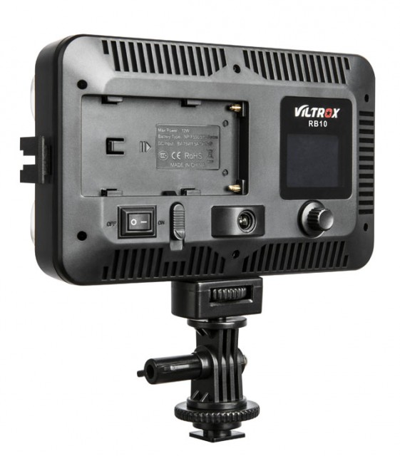 Viltrox RB10 LED svjetiljka opremljena je sa 128 visokokvalitetnih bijelih LED dioda (64x 3300 K + 64x 5600 K), kao i 14 RGB LED dioda manje potrošnje i stabilne temperature boje. Zahvaljujući maloj težini (220 g bez baterije), malim dimenzijama (168x98x32 mm), podršci za baterijsko napajanje. NP-F550/F570 (izdržljivost cca. 2,5 h) i standardnim navojem od 1/4” s redukcijom za ležište bljeskalice, idealan je alat za mobilno snimanje, npr. s DSLR/DSLM. Svjetlina (20~100%) i temperatura boje (3300~5600K) mogu se kontrolirati; intenzitet je cca 2300 lx (@ 0,5 m) odn 600 lx (@1 m). Kut snopa 60° (bijeli LED) i 120° (RGB), indeks uzvrata boje Ra≥95 (za bijele LED). Mogućnost vanjskog napajanja 8V~15V=/10W.