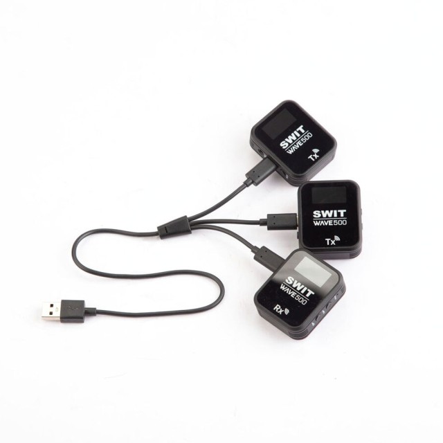 I WAVE500 Tx i Rx imaju unutarnju bateriju koja može osigurati 8 sati neprekidnog rada. Paket sadrži 3-u-1 USB-C kabel za punjenje za punjenje 2x Tx i 1x Rx istovremeno. Za punjenje do 80% potrebno je 1 sat, a za potpuno punjenje 1,5 sat.