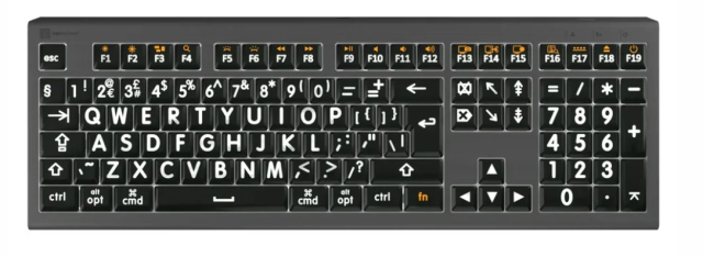 Logickeyboard Braille/LargePrint Black on White PC Assistive Keyboard je pristupačna