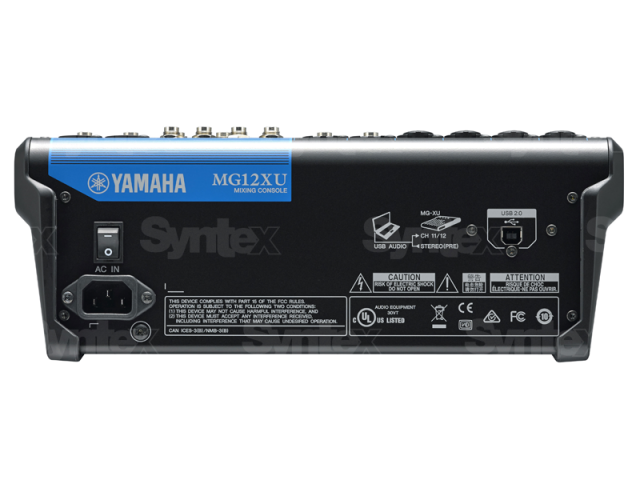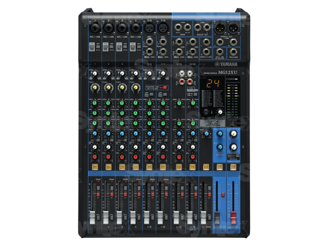 MG12XU iz Yamahe je kompaktni mikser s dvanaest istodobnih ulaza, idealan za nastupe, snimanje predavanja i više. Mikser ima četiri mono mikrofonska/linijska kombinirana ulazna kanala, dva stereo linijska ulazna kanala koji se također mogu koristiti kao mono mikrofonski ili linijski ulazi (XLR i stereo 1/4" ulazi) i dva stereo linijska ulaza s 1/4" i RCA konektori. Također ima USB vezu i može osigurati dva ulazna i dva izlazna kanala na računalu do 24-bita / 192kHz, idealno za snimanje nastupa uživo, demoa i više.