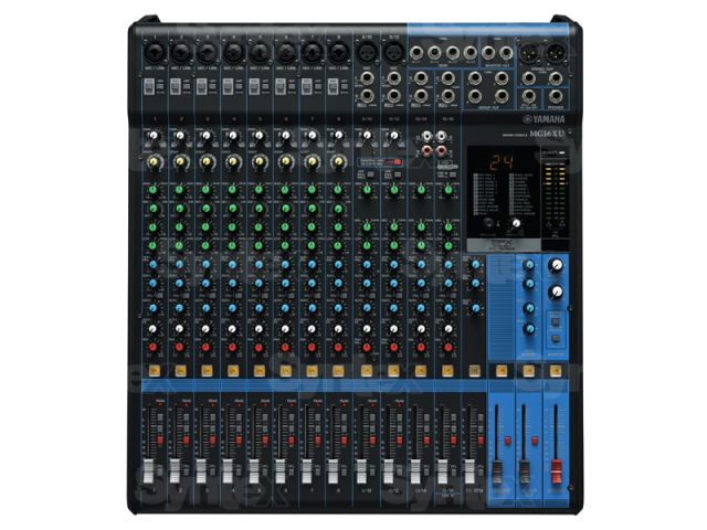 MG16XU iz Yamahe je kompaktni mikser sa šesnaest simultanih ulaza, idealan za nastupe, snimanje predavanja i više. Mikser ima osam mono mikrofon/line kombiniranih ulaznih kanala, dva stereo linijska ulazna kanala koji se također mogu koristiti kao mono mikrofonski ili linijski ulazi (XLR i stereo 1/4" ulazi), i dva stereo linijska ulaza sa 1/4" i RCA konektori. Također ima USB vezu i može osigurati dva ulazna i dva izlazna kanala na računalu do 24-bita / 192kHz, idealno za snimanje nastupa uživo, demoa i više.