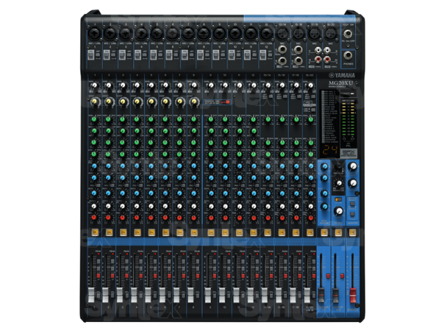 Yamaha MG20XU je kompaktni mikser s 20 simultanih ulaza, idealan za nastupe uživo, snimanja, predavanja i više. Mikser ima 12 mono mikrofon/line kombiniranih ulaznih kanala i 4 stereo linijska ulazna kanala koji se također mogu koristiti kao mono mikrofonski ili linijski ulazi. Opremljen je i USB priključkom te može osigurati 2 ulazna i 2 izlazna kanala na računalo do 24-bita / 192 kHz, što je idealno za snimanje nastupa uživo, demonstracija i slično.