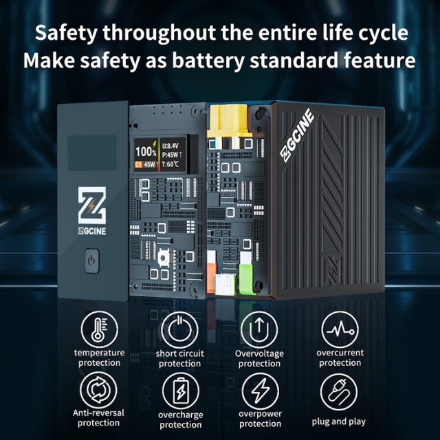Baterija ZGCINE BT-NPF970 L serije pruža visokoučinkovitu snagu u izdržljivom, kompaktnom obliku s litij-ionskim kapacitetom od 9600 mAh (7,2 V/69,12 Wh), podržavajući brzo PD punjenje i pražnjenje do 36 W putem USB-C. Opremljena D-TAP izlazom (8,4 V/3 A), NPF izlazom (7,2 V/10 A) i NPF ulazom (8,4 V/6 A), napaja širok raspon filmske i emitirajuće opreme. Ugrađeni OLED zaslon omogućuje praćenje postotka baterije, napona (U), snage (P), temperature (T) i statusa C1 sučelja u stvarnom vremenu, s jednom tipkom za prebacivanje prikaza (neaktivan tijekom punjenja). Dizajnirana za sigurnost tijekom cijelog svog životnog ciklusa, uključuje zaštitu od temperature, kratkog spoja, prenapona, prekomjerne struje, anti-reversal, prekomjernog punjenja i preopterećenja. Izrađen od PC+ABS-a, pouzdano radi od -10°C do 45°C i ima plug-and-play funkcionalnost za besprijekornu integraciju u profesionalne radne procese.