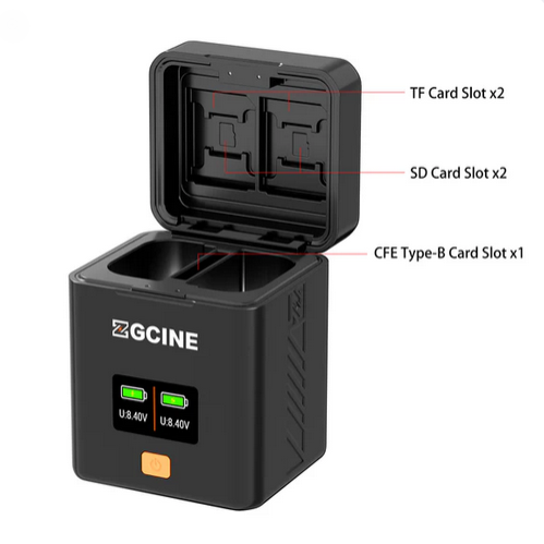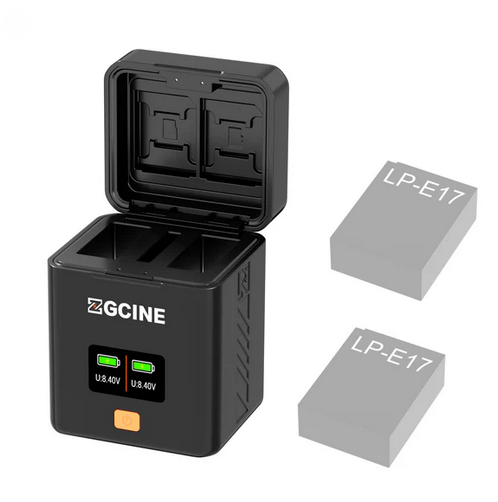 ZGCINE kućište za punjenje je višenamjenski dodatak za Canon LP-E17 baterije. Podržava brzo punjenje putem USB-C PD priključka i ima namjenske utore za dvije SD, dvije TF i jednu CFE memorijsku karticu tipa B. S OLED zaslonom od 0,96 inča, ovo kompaktno kućište je sveobuhvatno rješenje za punjenje i organiziranje vaše opreme.