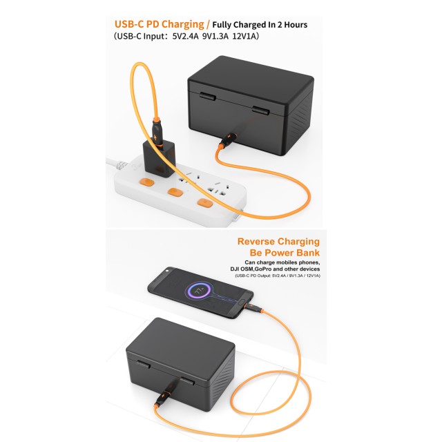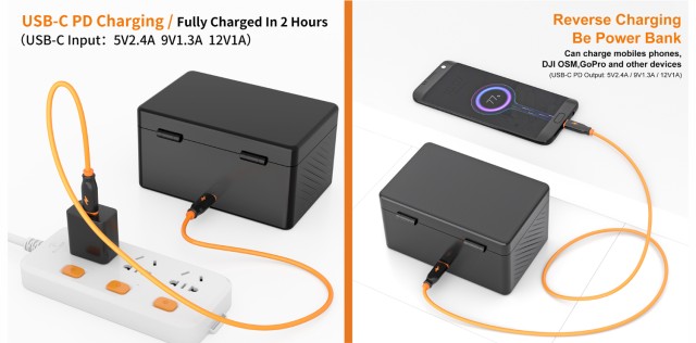 S ugrađenom baterijom od 3400 mAh , kućište može puniti do 6 Rode Wireless GO ili ME jedinica , osiguravajući produženu upotrebu tijekom snimanja i sesija uživo . USB-C PD 20W ulaz/izlaz podržava brzo punjenje , dok tri dodatna USB-C priključka (5V/500mA svaki) omogućuju istovremeno punjenje više uređaja .