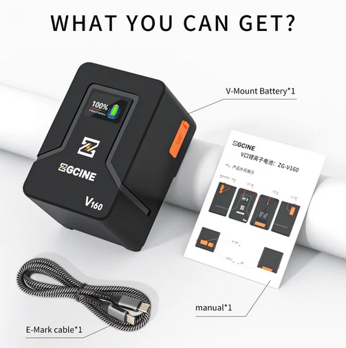 ZGCINE V-Mount baterija 16,8 V 160 WH pruža snagu velikog kapaciteta, brzog punjenja s USB-C PD ulazom/izlazom i autentičnim Samsung baterijskim ćelijama. Idealan za zahtjevnu opremu za video produkciju.