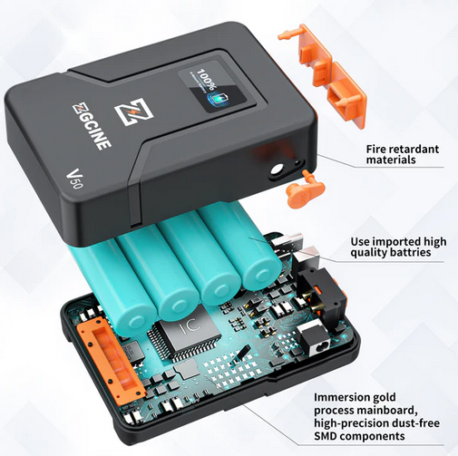 ZGCINE ZG-V50 V-Mount baterija je kompaktna, ali snažna baterija dizajnirana za snimatelje i fotografe . S kapacitetom od 50 Wh , ova baterija od 14,8 V, 3,4 Ah idealna je za napajanje kamera, LED svjetala , monitora i druge digitalne opreme. Baterija ima OLED zaslon u stvarnom vremenu koji prikazuje bitne informacije poput napona i preostale snage , osiguravajući da ostanete informirani tijekom rada.