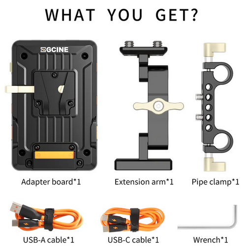 ZGCINE V Mount Plate VP1 Kit3 nudi svestrana rješenja za napajanje s USB-C PD izlazima, višestrukim izlaznim priključcima i podesivom rukom za opremu za kamere. Ima kontrolu jednim gumbom, indikator baterije i kompatibilnost s industrijskim standardnim V-mountom.