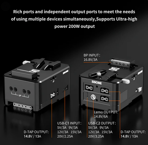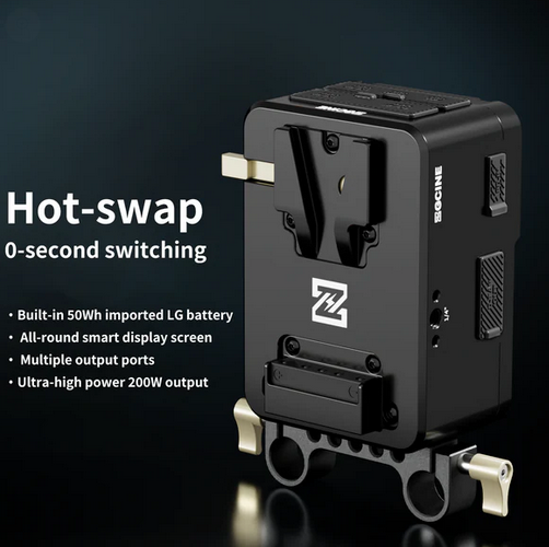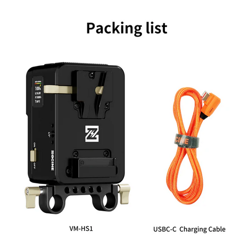 ZGCINE VM-HS1 je V-mount ploča s ugrađenom baterijom i vrućom zamjenom, dizajnirana za kontinuirano napajanje RED, Arri i drugih profesionalnih kamera. Ima ugrađenu bateriju od 50 Wh za besprijekornu zamjenu tijekom rada, više izlaznih priključaka, uključujući dvostruki USB-C PD i četiri D-Tap, te 0,96-inčni IPS zaslon s funkcijom podsjetnika za odbrojavanje. Ova kompaktna ploča osigurava neprekinuto napajanje tijekom dugih snimanja.
